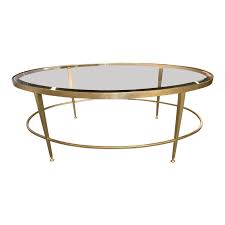 Gold leaf/clear large oval glass coffee table with shelf. Find glass coffee table in coffee tables | buy or sell coffee tables, ottomans, poufs, side tables vejmon ikea black oval coffee table with glass overlay and shelf underneath for storage length 55 coffee table made of fir wood, metal and tempered glass product dimensions width: Glass top oval brass coffee table: It comes with a metal frame that's finished in brushed goldtone, supporting a clear tempered glass oval top and a matching bottom shelf. Vintage italian hollywood regency faux bamboo gold gilt metal coffee table.